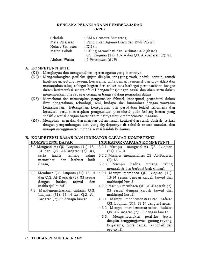 Rpp Pai Cerahkan Nurani Dengan Saling Menasehati