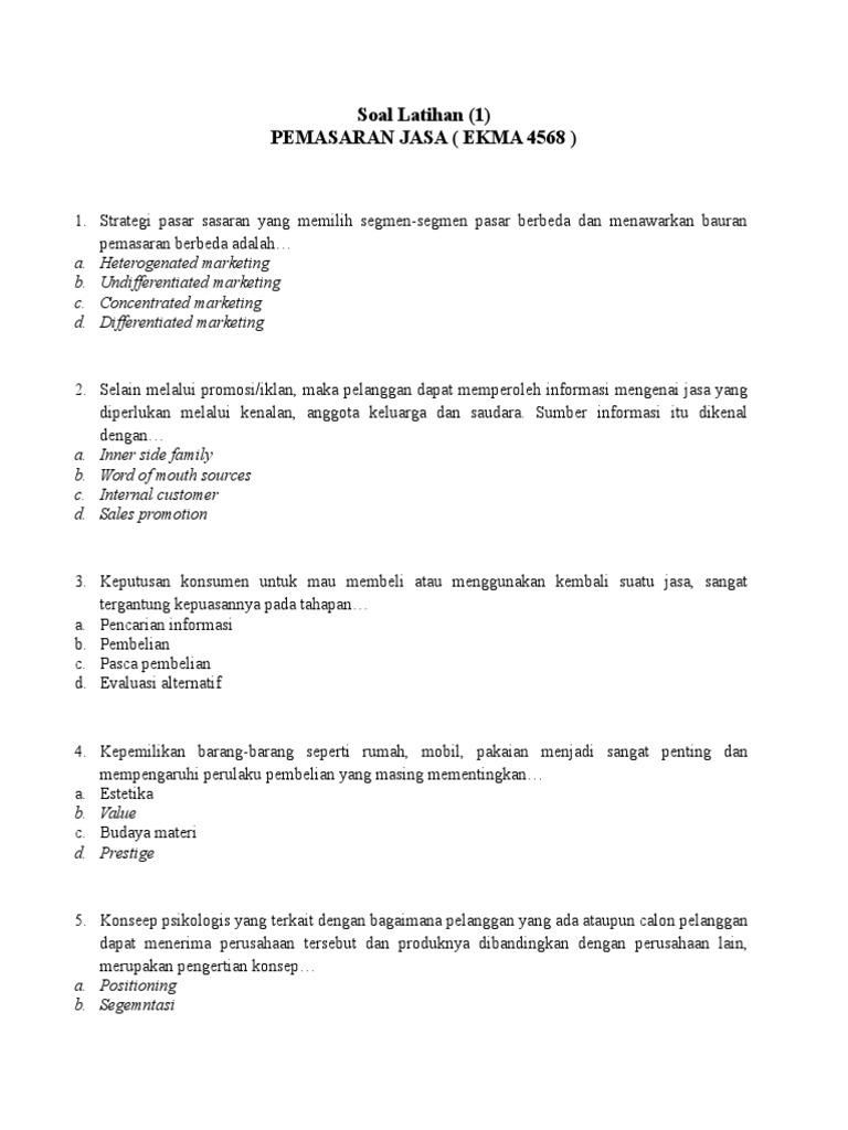 Contoh Soal Pemasaran Jasa Ekma4568 Ut